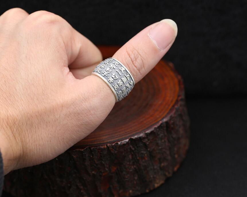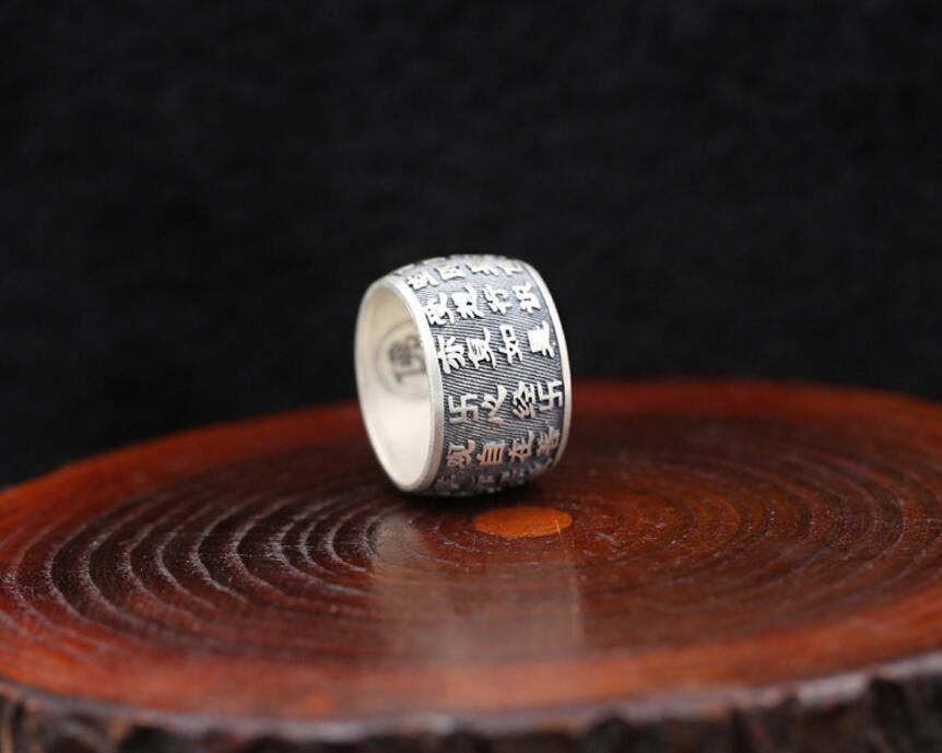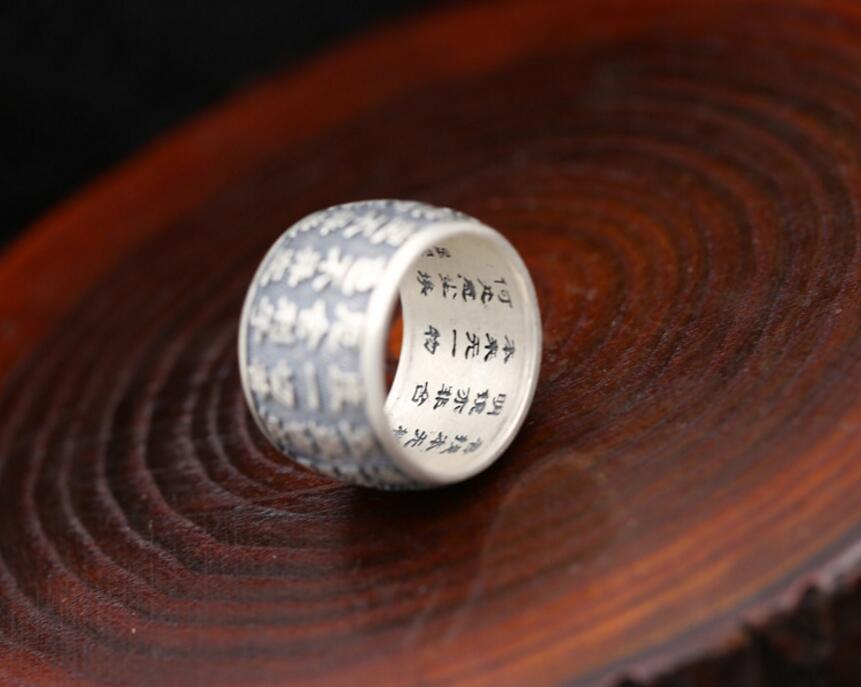 Nhẫn bạc khắc Bát nhã Tâm Kinh kiểu chữ nổi