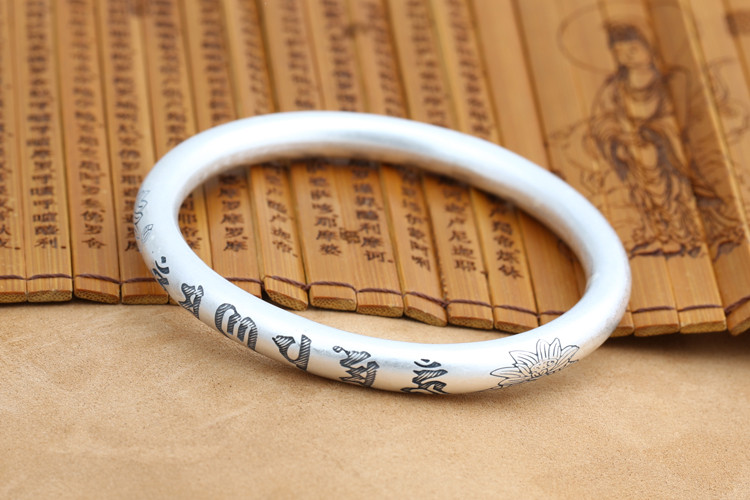 Vòng tay bạc khắc Om ma ni pad me hum